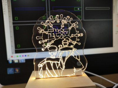 心灵手巧的学姐则创作“无事牌”。“无事牌”上的梅花鹿由激光雕刻,再通过学姐们的精巧绘画将其制作完成。这看似简单,但如果上色不均匀就会一笔毁所有。木猪则由大小不一的木块打磨光滑后拼接而成。树由凿子一点点凿出。“无事牌”表面“无饰”,与“无事”谐音,所以有着驱邪免灾、平安健康的寓意。后来有人把它命名为“平安无事牌”。在中国古代梅花鹿是吉祥的化身。因为鹿和禄的发音是相似的,所以也代表着富裕。而猪象征着勇敢、厚道、忠诚、谨慎、诚实。在疫情仍然未停止的当下,通过“无事牌”“梅花鹿”和“猪”表达着美好的祝福和祈愿。同时,两棵绿树也传递了要保护环境,爱护自然的精神。