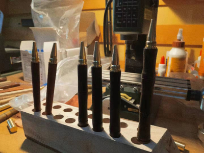 老练的高二学长沉稳实干,负责木笔项目。一支支圆木笔,实际上是由一个个方形的木块切割制作而成。在外部,每一支木笔的山水纹都通过精心打磨,将手工技艺和中华文化气质结合于一身。在内部,需要通过转头大小的配对和内部深度的精准测量才能将木笔内部构造完成。在制作过程中若不慎出现差错而导致木笔出现裂纹,那只能算是“次品”了。“笔”谐音“避”,希望在新的一年里大家避开一切厄运,以笔书写美好人生。
